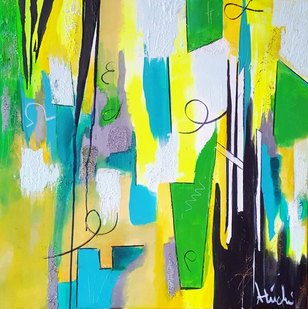 Aus abstrakter Serie vier Jahreszeiten. Original 80c80cm, Acryl Mischtechnik. Mit Silberrahmen Fr. 1800.